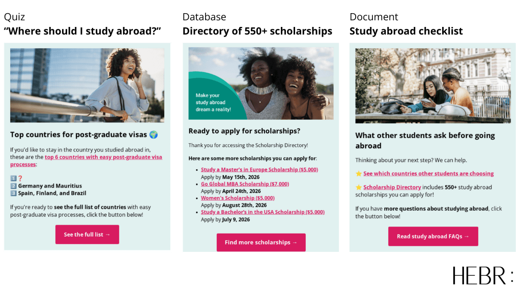 What is more, the conversion rate for these automatic emails is 38%, meaning that just over one in three people who clicked through the email submitted a lead for a program or university. This indicates high user intent and engagement with the content.